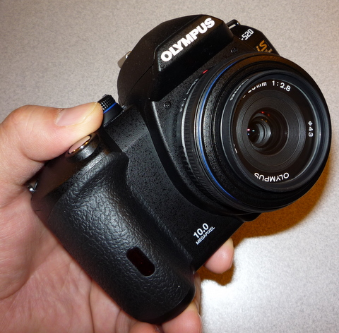 写真で見てわかるように薄いと言ってもE-520のグリップより