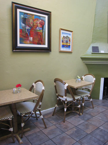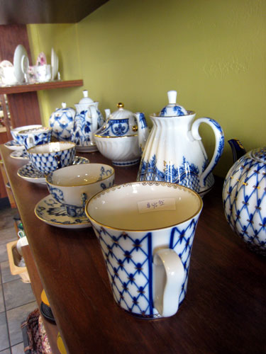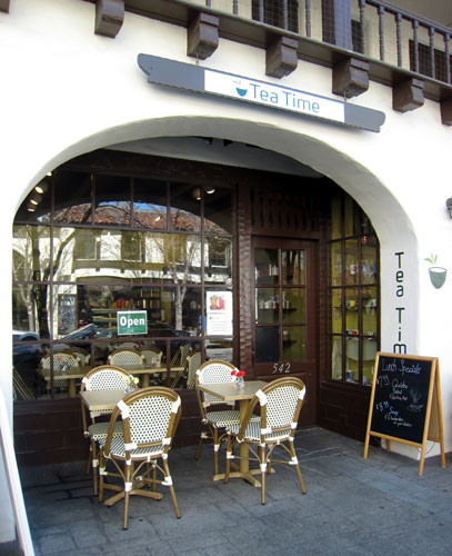 キャベツのサラダも鮭もとても美味しかったです。さて、お食事が終わった頃にチェックがきました。15%のチップはいくらか暗算をしないといけません。消費税が8%ですから、消費税を2倍にしたら大体チップの金額になります。で、二人とも2ドル50セントをトータルに書き込まないといけないのですが、Vivianさんの計算では私のより、1ドル少ない!「Vivianさん、あ~た、間違いでしょう!9と5を足したら14になるから、1くりあげて22になるでしょう!」「21でしょう。」「でも~9と5を足したら14になるから、1を10桁にたしたら22になるでしょう!」「Chiblitsさん!21ドルですっ!」「うへ~そうでした!18と3をたしたら21ドルだった!」そして今度は近くのTea Timeという紅茶専門店でお茶をすることにしました。でも2時間が切れそうですから、お茶をする前に車を移動しないと。駐車場の注意書きに「制限2時間。駐車のし直しは禁止」とあります。それでは又別の駐車場を見つけないとです。仕方なく2ブロックも運転していたら、又制限2時間の駐車場が見つかりました!!しかもTea Timeの直ぐ近くに。良かった良かった!とても可愛いお店でした。