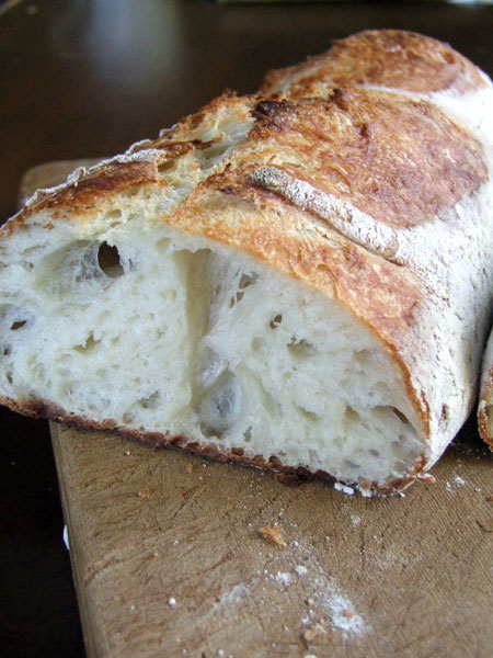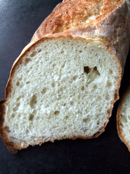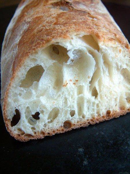 そして昨日は古いイーストは捨てて新しい元気一杯のイースト菌でフランスパンを焼いたのです。 そしたらまぁ~その元気の良いこと! 成形中の生地にも弾力を感じるし、これなら最高の出来になるだろうとわくわくで焼成中もオーブンを覗いていたらクープも満開!粗熱が取れるのを待つのももどかしく、ナイフを入れてみると気泡がない!!!全く無いのだ!