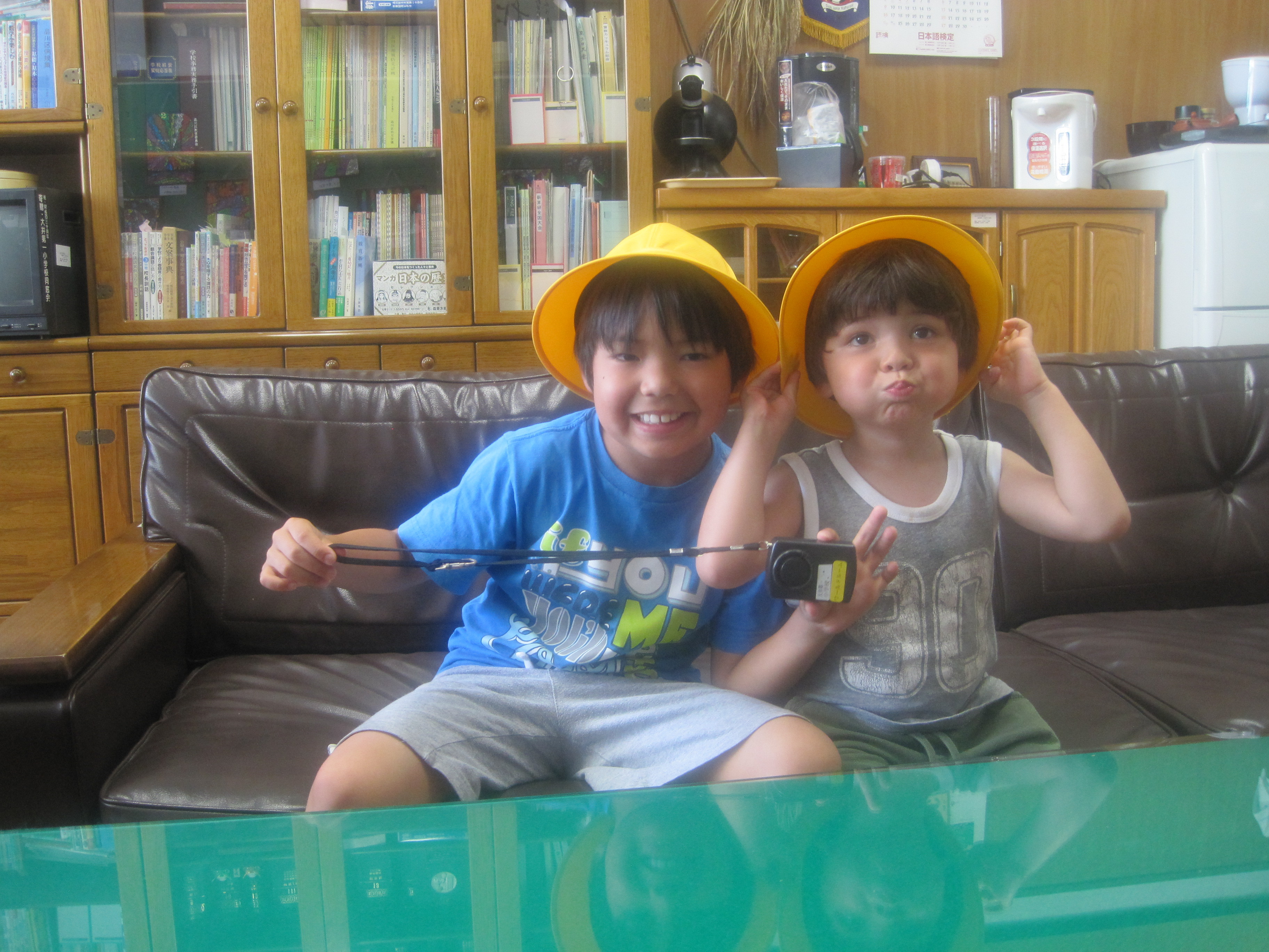 リアム、今日から小学校の体験入学が始まった。本当は1週間の予定だったが、コリンが2週間幼稚園に行くことになったのを知ると「僕も2週間行ってもいいよ」と言い出し、学校側も簡単に承諾してくれた。しかも、1年生クラスに入れてもらえた。ラッキー!! 今日は1年生の黄色い帽子を被り登校。校長室で待っていると、1年生の女の子たちが窓に張り付いて手を振っていた。「僕、もうお友達ができたよ」と安心した表情のリアム。 朝礼の際、全校生徒800人の前で校長先生が紹介してくださった。「ぼく、リアムです。アメリカから来ました。よろしくお願いします 」とあいさつしたリアム。 午後に迎えに行くと、「楽しかったよ!」と笑顔で廊下で待っていた。一番楽しみにしていた給食はお代りをしたそうだ。クラスメートが「リアムくん、ばいばい!」と手を振ってくれた。外人のショーンはすぐに子供たちに囲まれた 明日はプールに入る日だそうで、またこれも楽しみ! さて、コリンは疲れがたまったのか、昨日から熱と下痢。登園の初日、残念ながらお休み