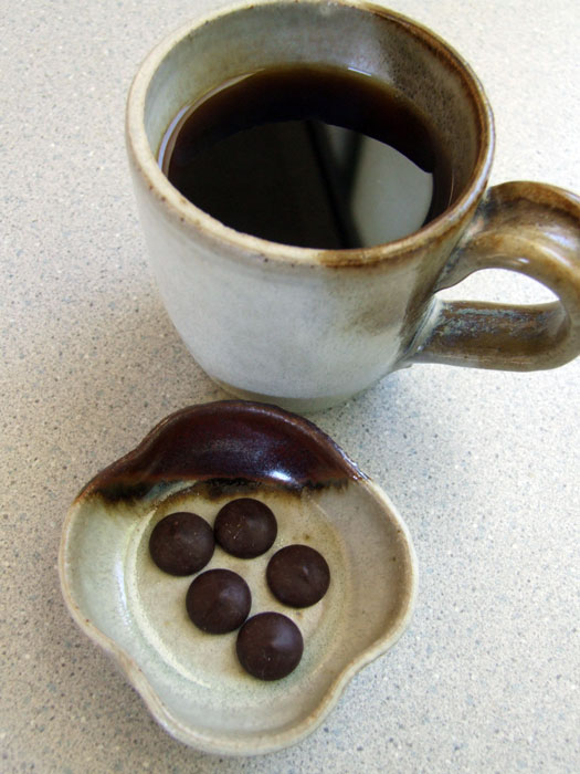 毎日朝のコーヒーのお供は5粒のダークチョコレートに決まっておりますが