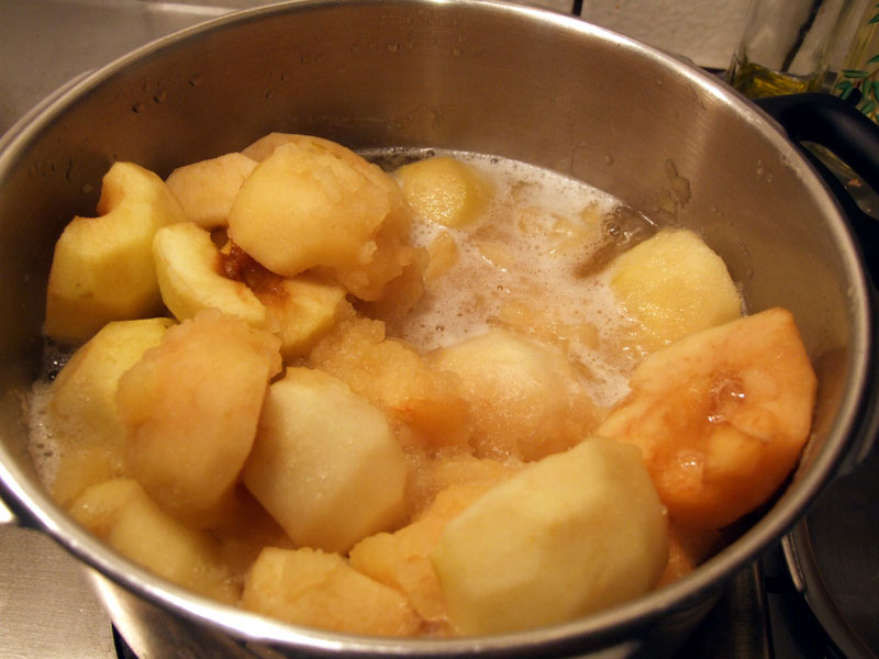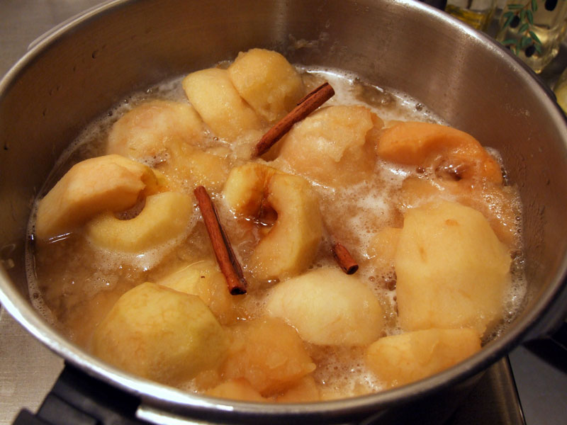 水 200ccでは焦げ付きそうですけどね最初から沢山水を加える必要はないのです。シナモン(樹皮があれば)を加えて更にりんごが壊れるくらいになるまで煮ます。 蓋をしてね。