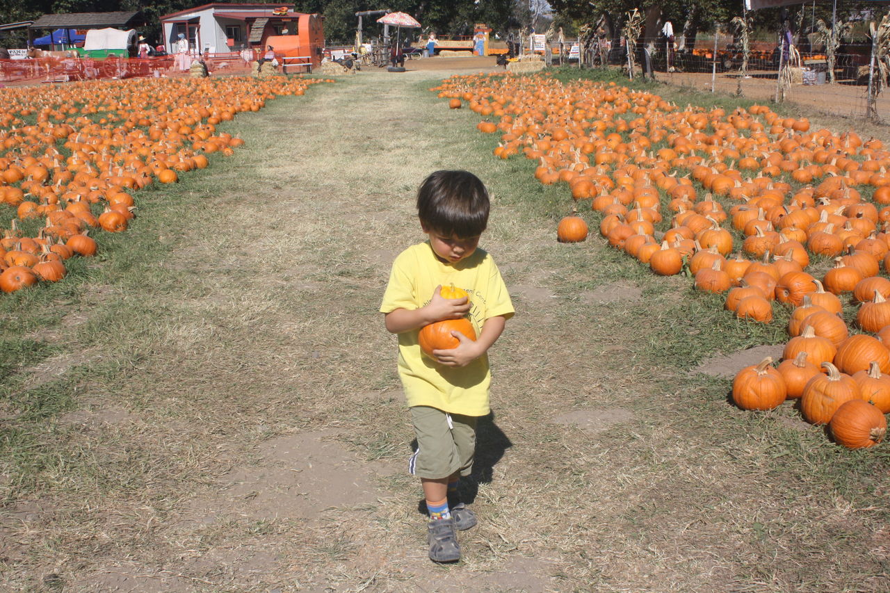 こちらはコリンのプリスクールの遠足で。み~んな帰ってしまい、誰もいない。最後の最後まで木の登って遊んでいたコリン。帰りは「おちないよ~に、おちないよ~に」と言いながらパンプキン二つをお土産に持って帰ってきた。