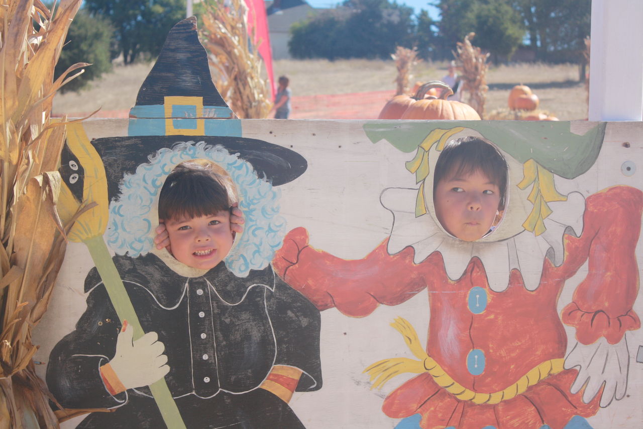 この頃ブログをさぼり気味。。。MixiとFacebookの一言機能にちょっと書くだけで、ブログを書いたような気分になってしまうからかも。それと、今長編小説に夢中で、コリンが寝付くまで隣で本を読んで、そのまま寝てしまうことが多い。やはり読書の秋?!といっても、ここベイエリアは今週90F近い夏日が続き、10月半ばになってもまだ日焼けをしてしまっている状態。子供たちも夕方からプールに行ったり、水の出る公園で遊んだりで、もうすぐハロウィーンとは思えない。でも、やはり秋は行事が盛りだくさん。先週末は、ブルーエンジェルスを見に家族でトレジャーアイランドへ。この3年同じ場所で見ている。去年は、あまりの爆音に号泣したコリン。今年は「耳を押さえるからだいどーぶ」。ブルーエンジェルスが背後からくるたびに、ちゃんと耳をふさいでいた。(背後から来て頭の真上を飛んでいく。)とにかく、「かっこいい」ブルーエンジェルス。神業としか思えない空中ショーに、"Wow!""Awesome!!" の言葉しかでなかった私。そう、一番興奮していたのは、何を隠そう私。。。隣町のパンプキンパッチにも友達家族と一緒に出かけた。子供の乗り物もある場所で、子供たちはお友達と大はしゃぎ。気候は夏だけど、パンプキンパッチに来ると、やはり秋を感じる。隣町のパンプキンパッチ↑