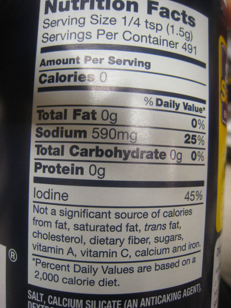 ヨウ素入り食塩(iodine saltと呼ばれている塩) 小さじ1弱 正確には小さじ0.9745