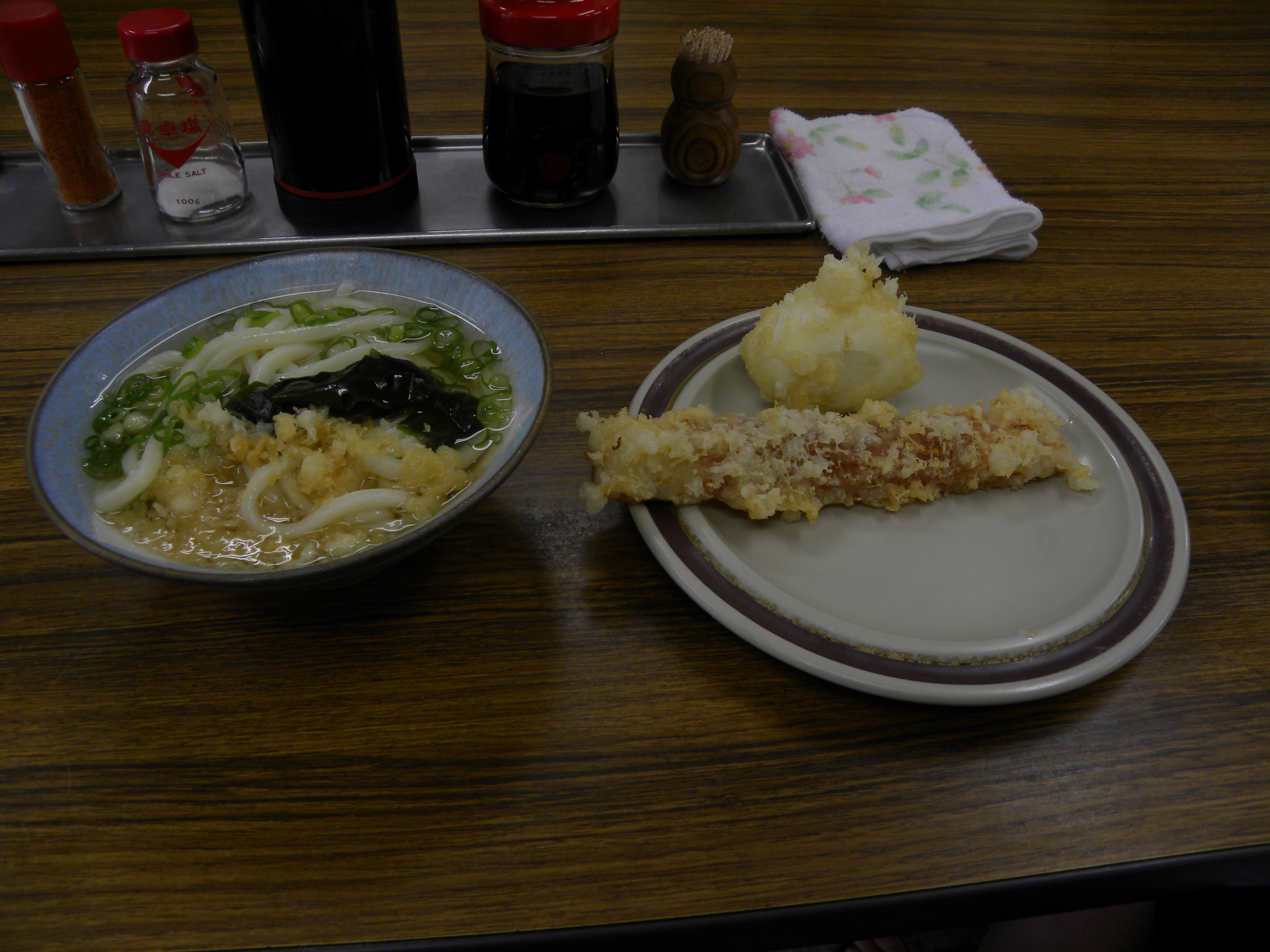 この特徴は「細い麺」。これは「中村うどん」の系統らしい。ちなみにこの日は2人でざるとぶっかけを注文して食べ比べたのだが、冷たいざるの方が麺の歯ごたえがよかった。ぶっかけは暖かいものを注文したのだが、ちょっと麺が柔らかくなった。やはり細い麺は温度に弱いのか。