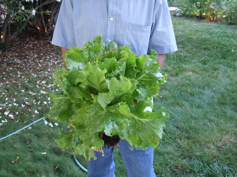 ウサギに食べられずこんなに大きな葉レタスがとれたのは初めてです。