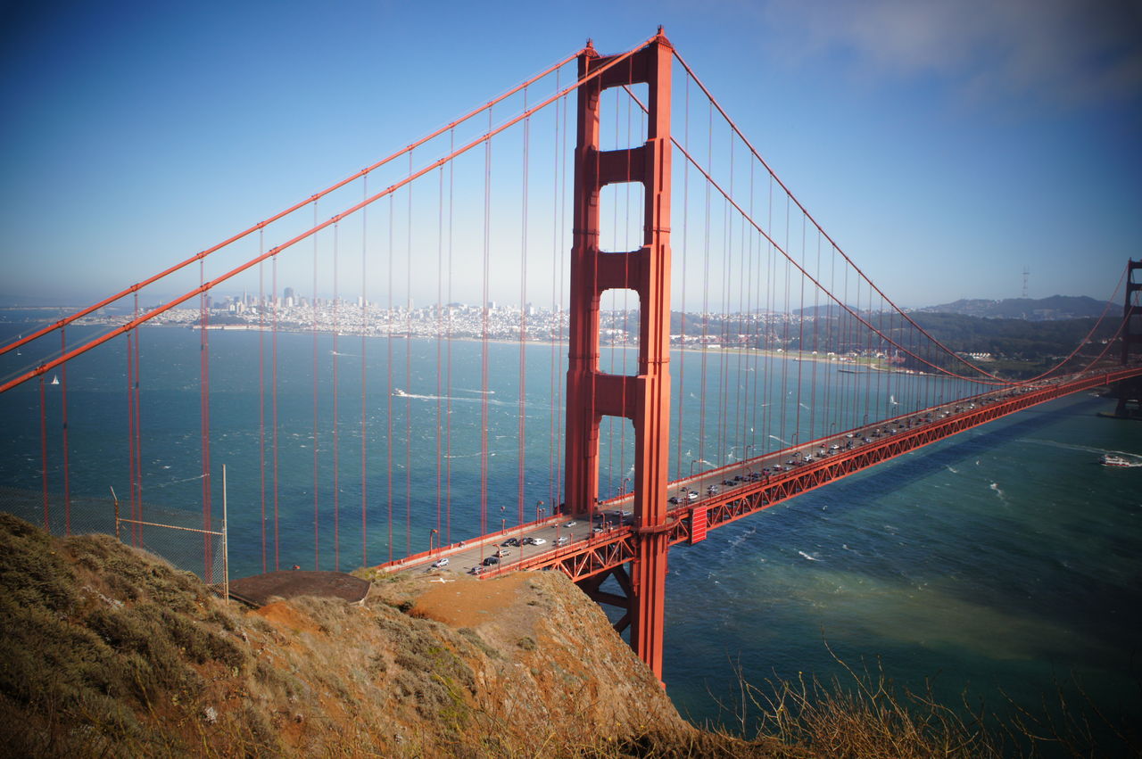(レンタルカーの手続きをしている間、子供たちと座り込んで遊びだすちーちゃん、義姉さん)空港で7人乗りのレンタカーを借りて、まずはサンフランシスコ市内の飲茶へ。私たちもここへ行くのは5年ぶり!コリンはべっぴんさんのちーちゃんに首っ丈で、しがみついたり、抱きついたり、体全体で「ラブ」を表していた。その後は5年前と同じコース、ゴールデンゲートブリッジへ。橋を渡って左側の丘から絶景を見るのがお気に入り。今日は霧も無く、橋が綺麗に見えたが、強風にあおられ、どの写真も皆髪がぐちゃぐちゃ。。。