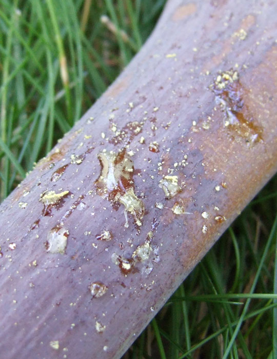 花も茎も表面が蜜でべたべたです。 外皮から蜜がにじみ出ています。