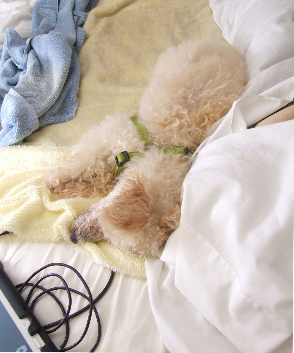 ちびは私の足元 つまり ベッドの先っちょに陣取って寝ています
