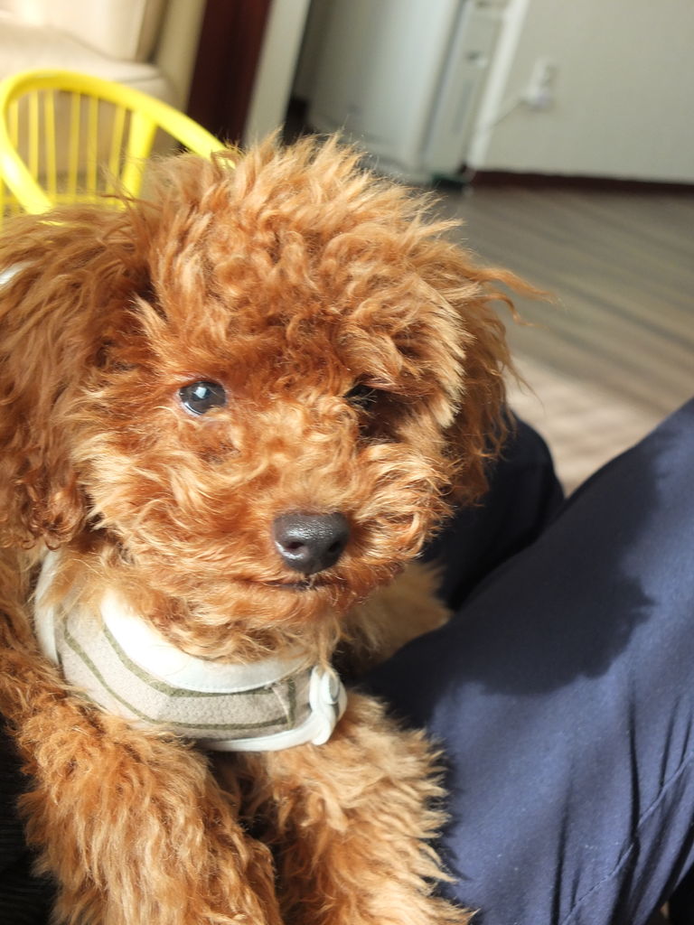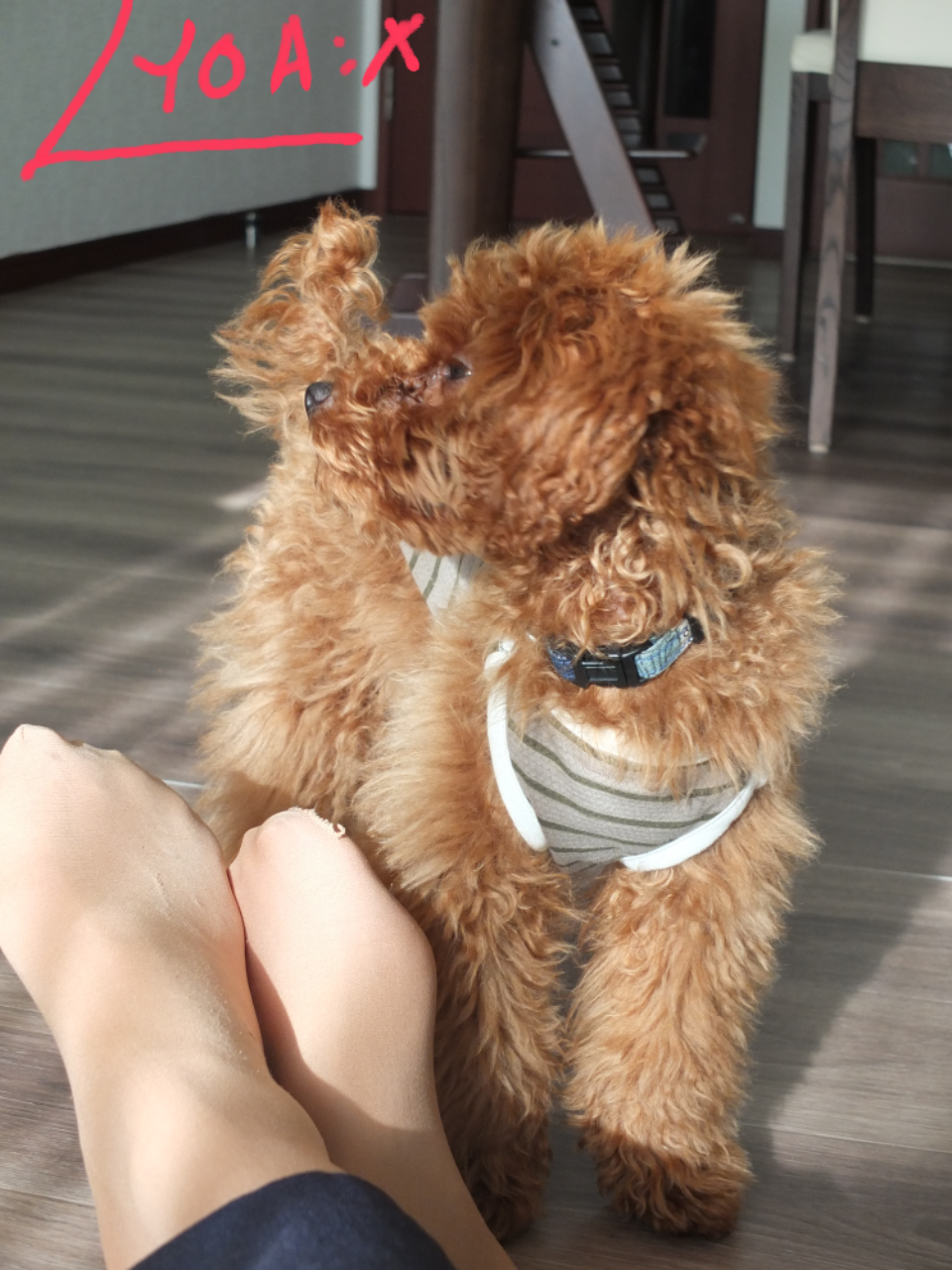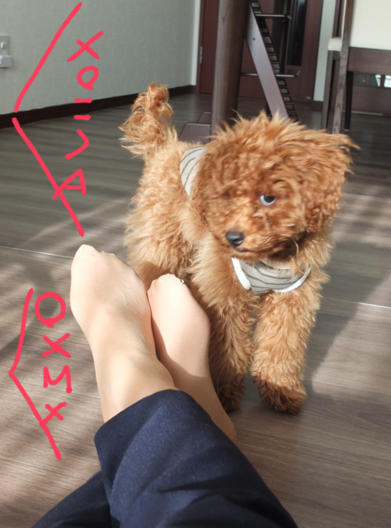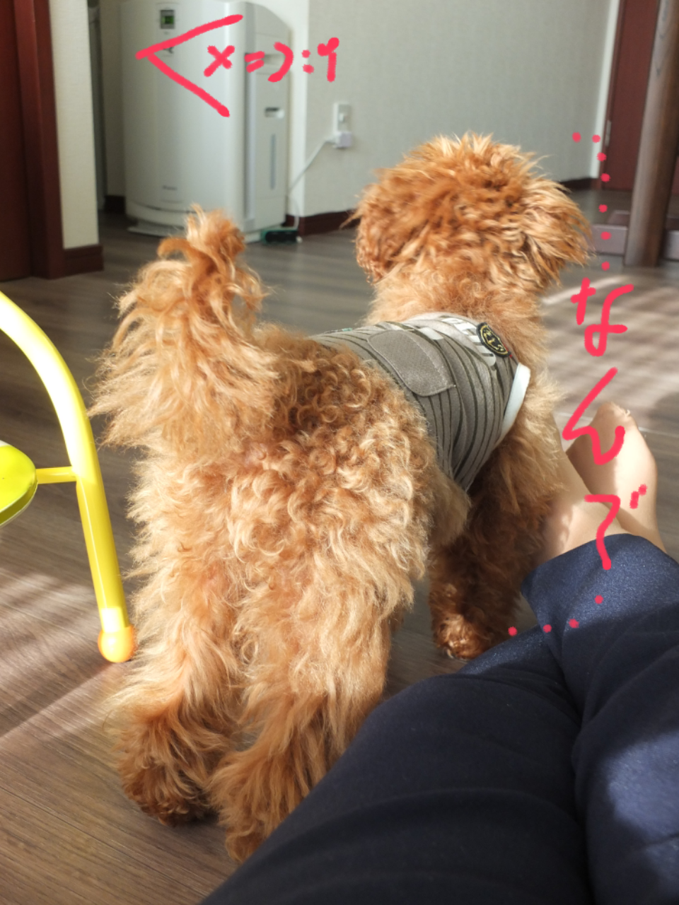 私は柵で囲ってあるリビングルームでチョコの毛づくろいです