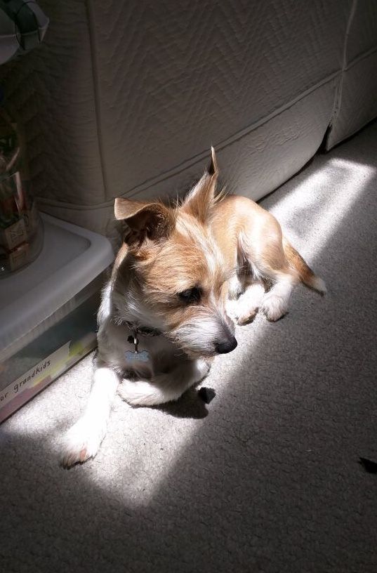 Chip is a smart, lazy, and stubborn dog. Chip knows when he has done something wrong, and he will go to his crate. Chip can sometimes be highly active and will dash around. He is also very curious.