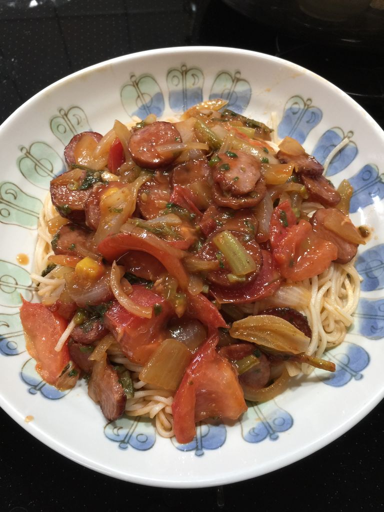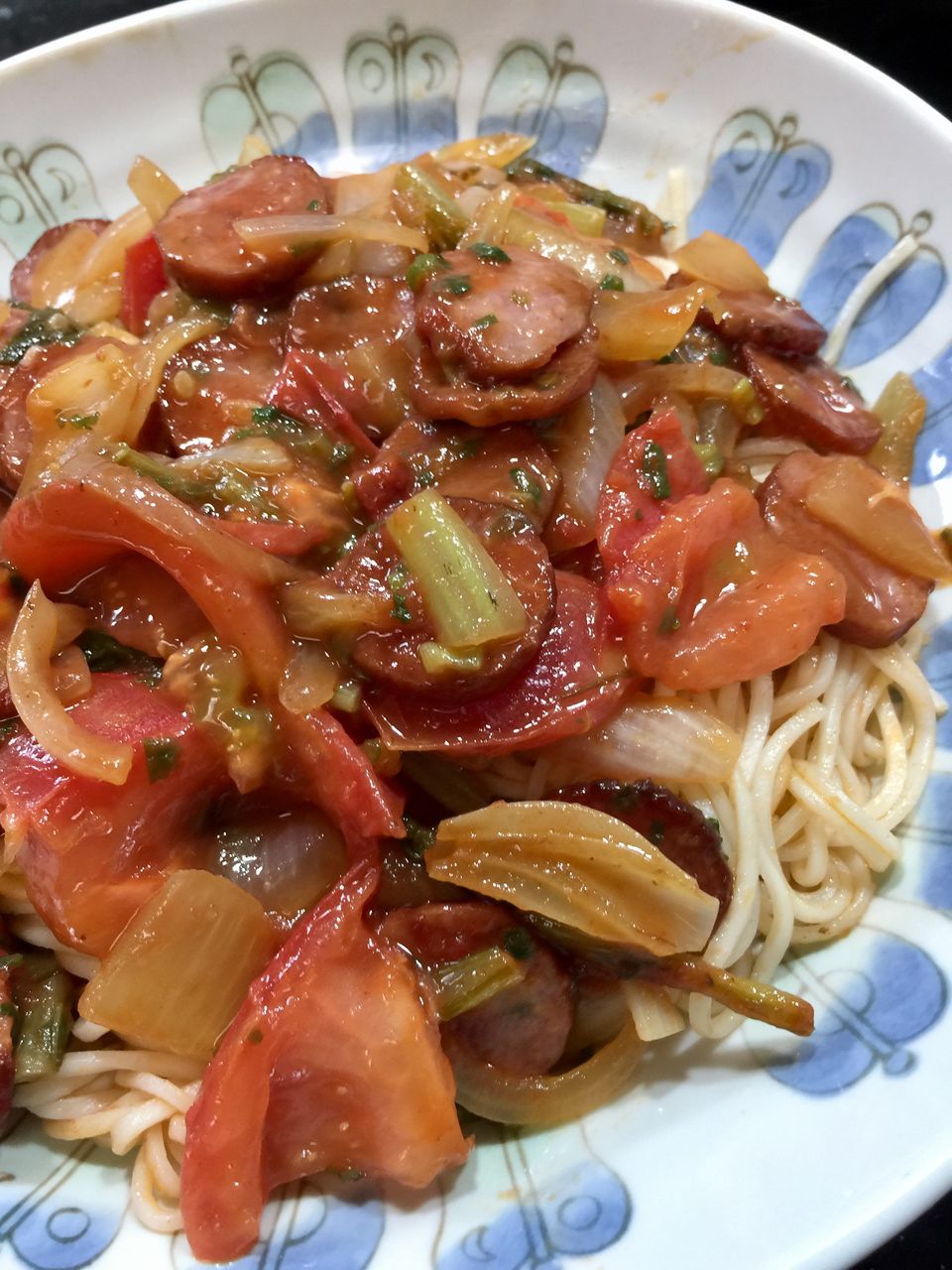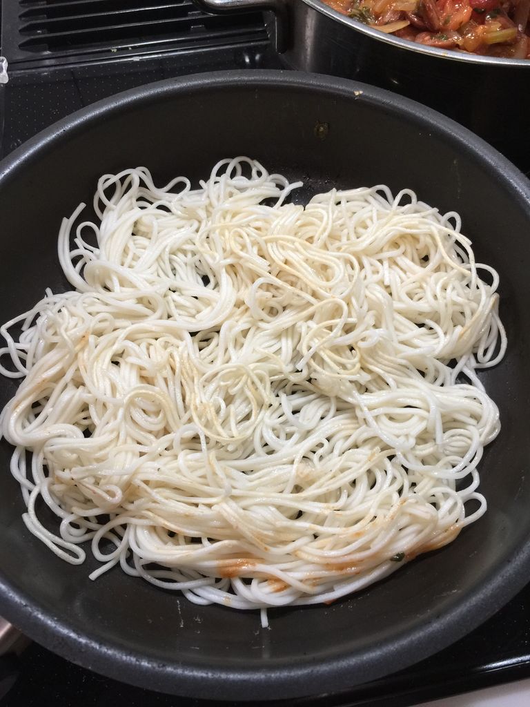 姉がスパゲティを買うのを忘れたので パスタの代わりに冷麦ですよ