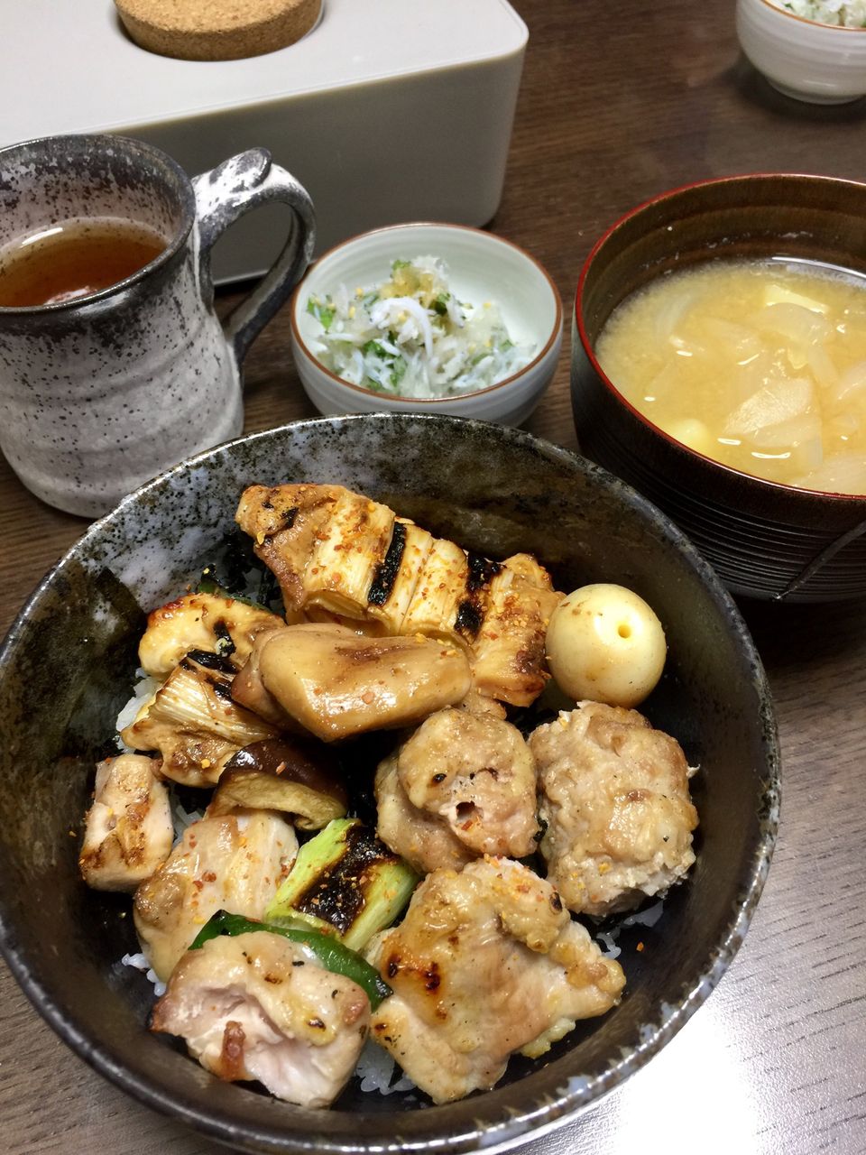 今日は焼き鳥丼 味噌汁 しらすの大根おろし和え