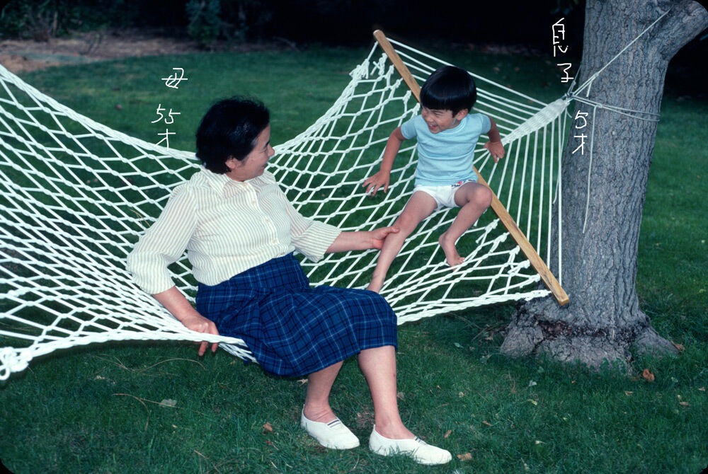 一昔前に おばあさんと孫が遊んでいました