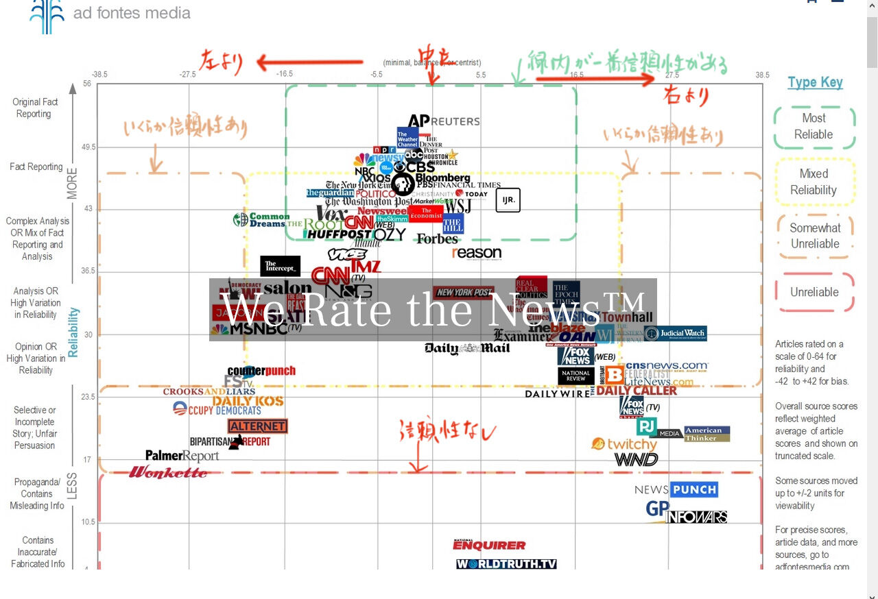 このグラフをみると一番信頼性が高くて中立なのがAPと Reutersですね